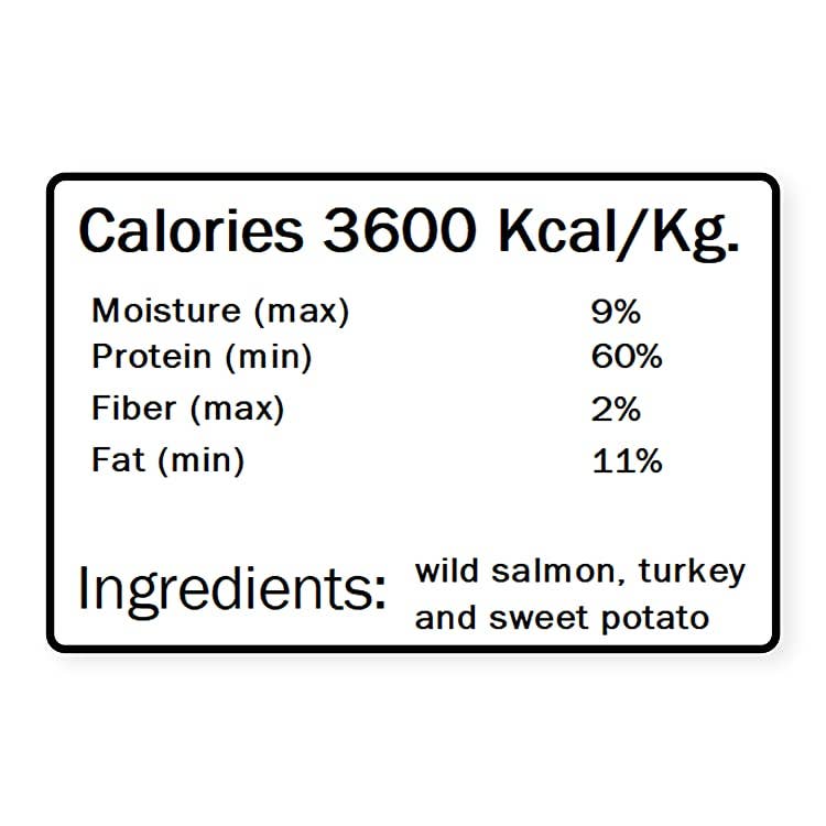 Ingredients: wild caught salmon, natural humanely-raised turkey, sweet potato, that’s it!