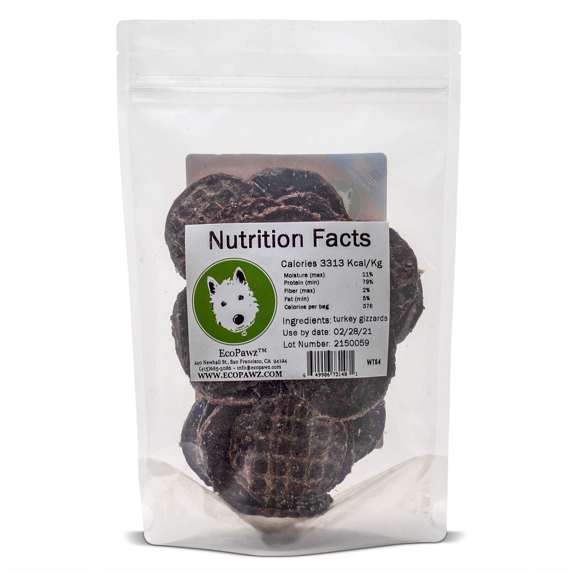We carefully dehydrate these healthy turkey gizzards into great snaps and hand carved the snap into perfect portions that can be easily separated with little crumble. They are great for training and were developed for dog sports such as agility. It can be Thanksgiving for your dog year-round with these treats!