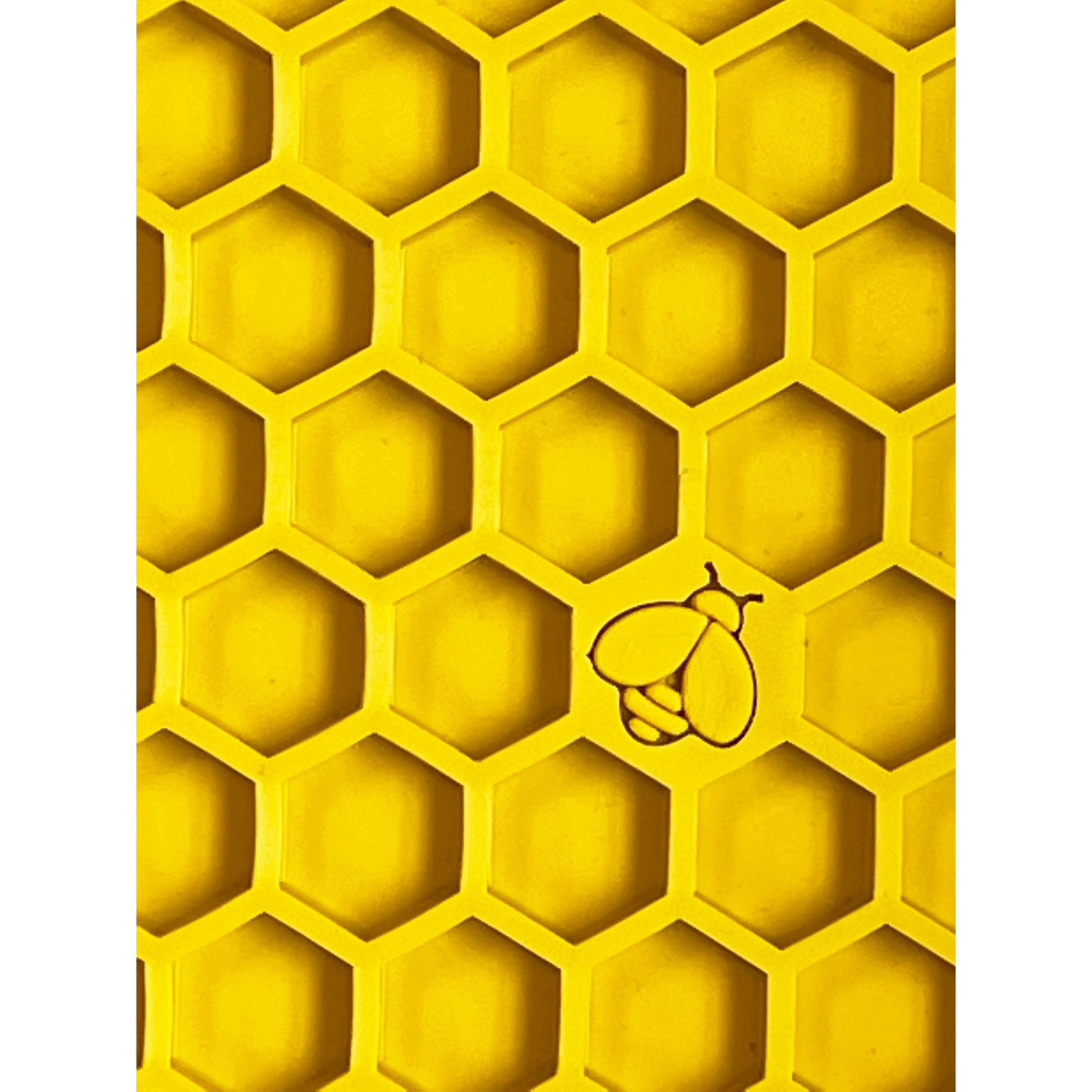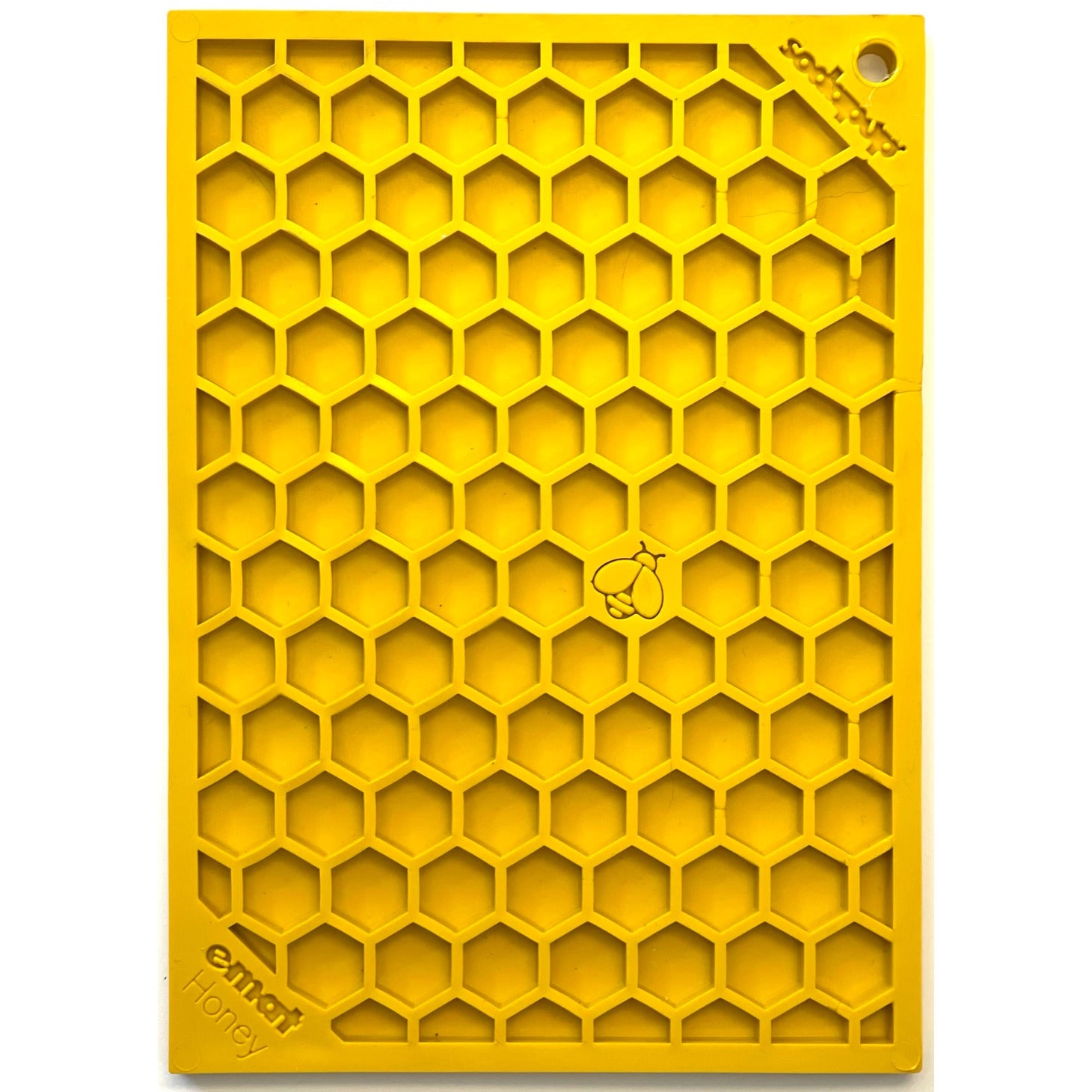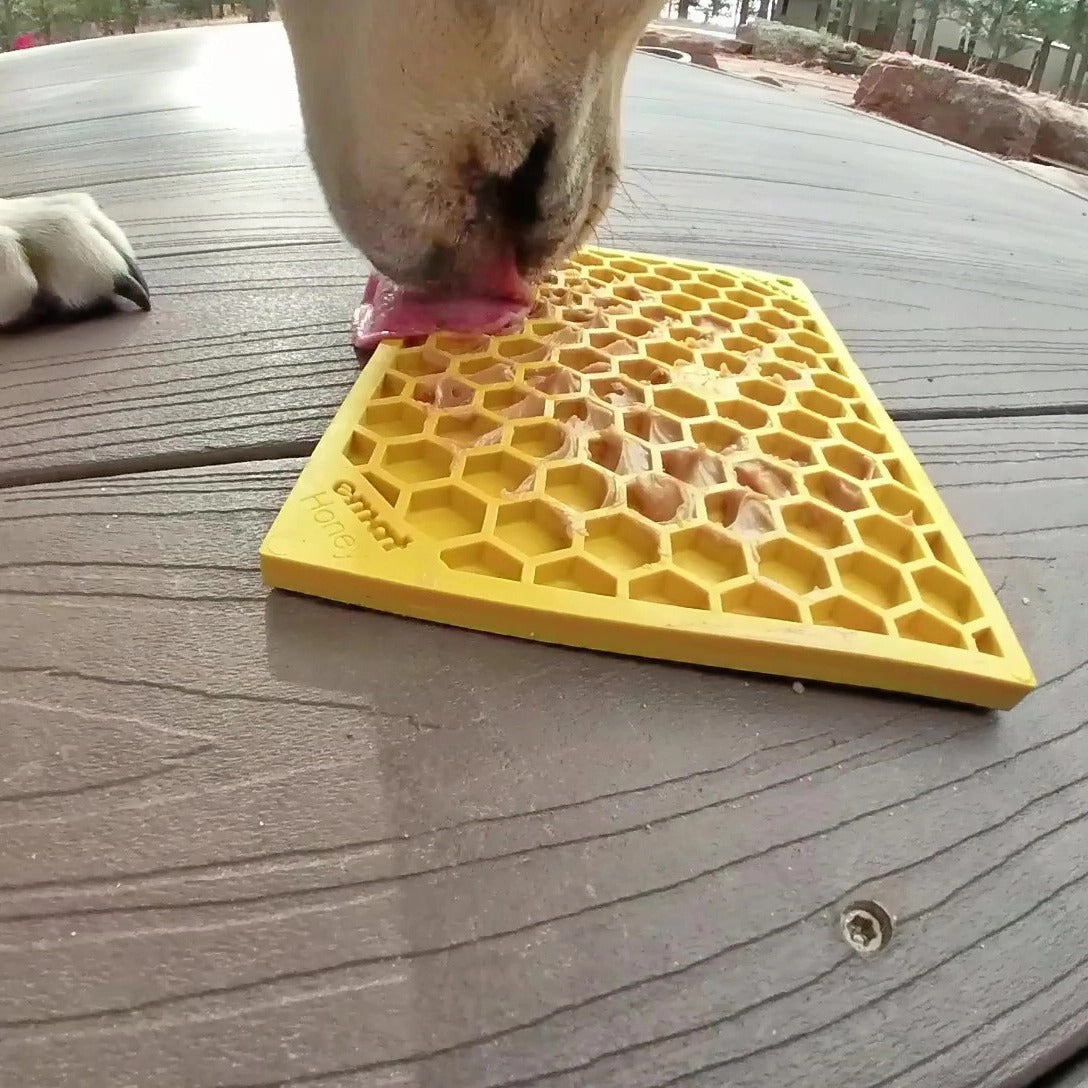Licking mat with a honeycomb design for small dogs or smaller snacks.
