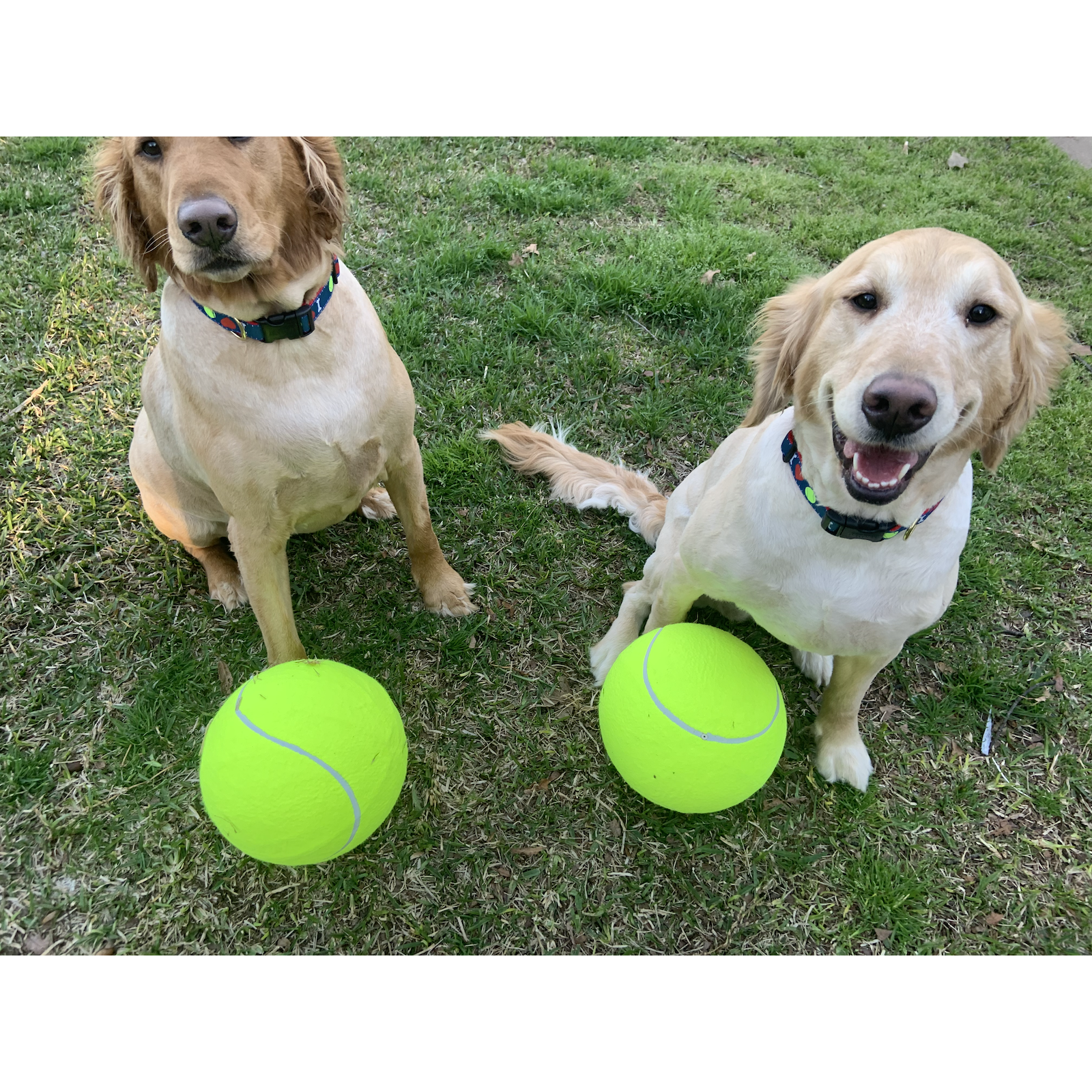 Watch the excitement on your best friend's face when you surprise them with this giant tennis ball. Measuring 9.5 inches, the tennis ball is made of a basketball inner core with a thick felt layer. This jumbo ball will provide countless hours of fun for your pup and is the perfect gift this holiday.