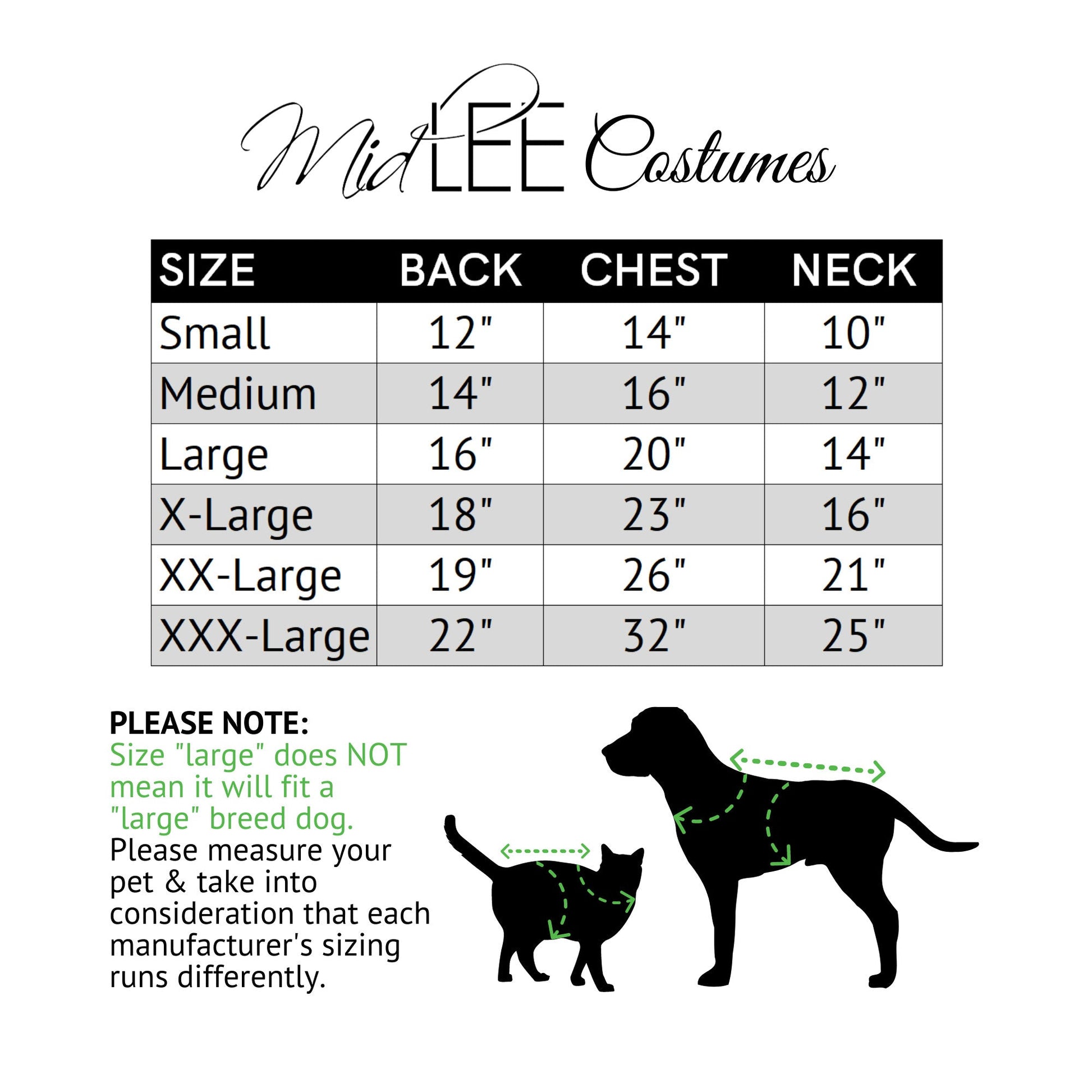 Medium: Fits a 12" neck, 16" chest, and 14" back length