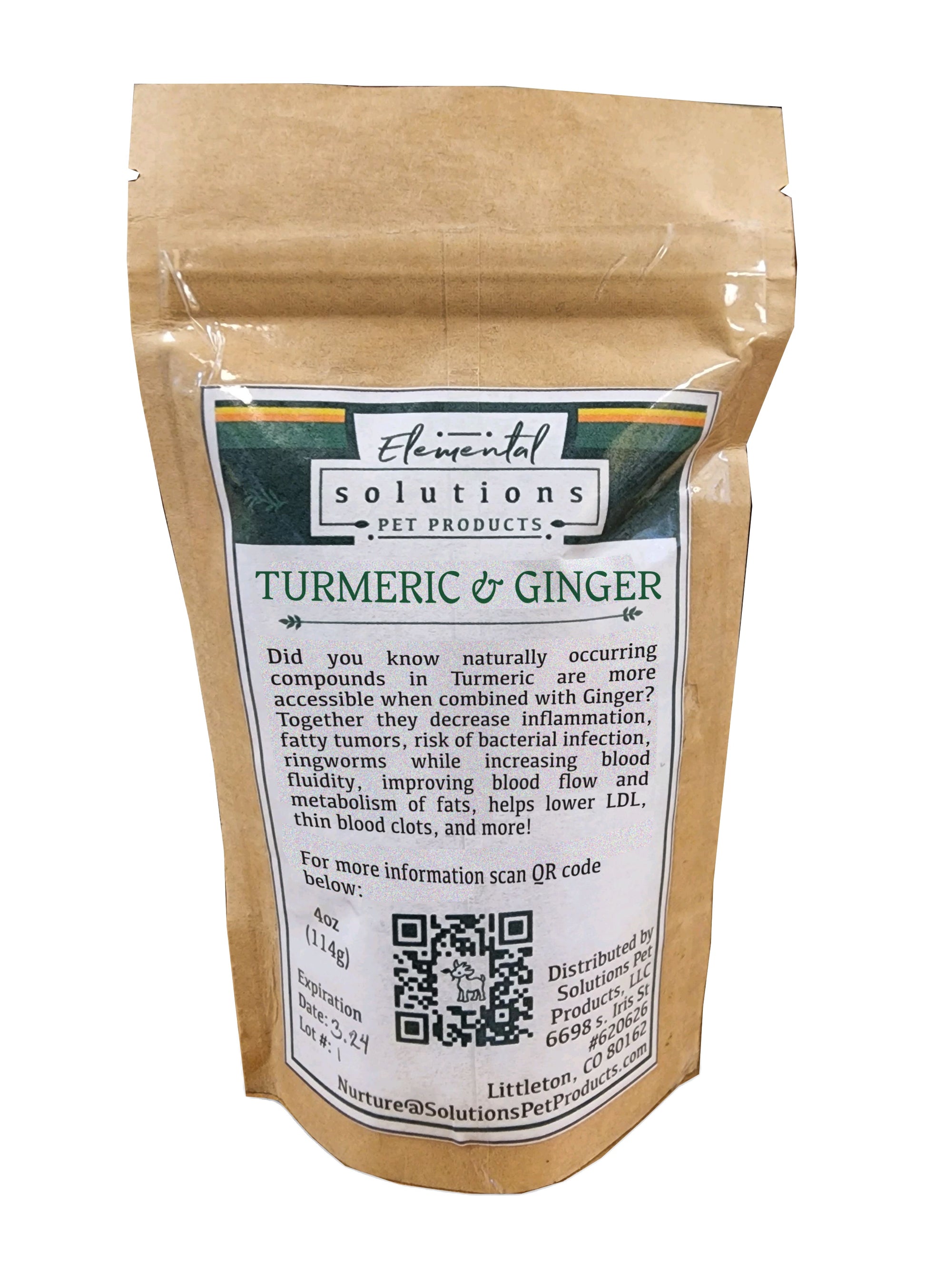 Turmeric’s primary active constituents are called curcuminoids which are made up to 2,000% more bio-available when combined with Ginger or Black Pepper (we didn’t think many dogs or cats would like Black Pepper so we used Ginger).